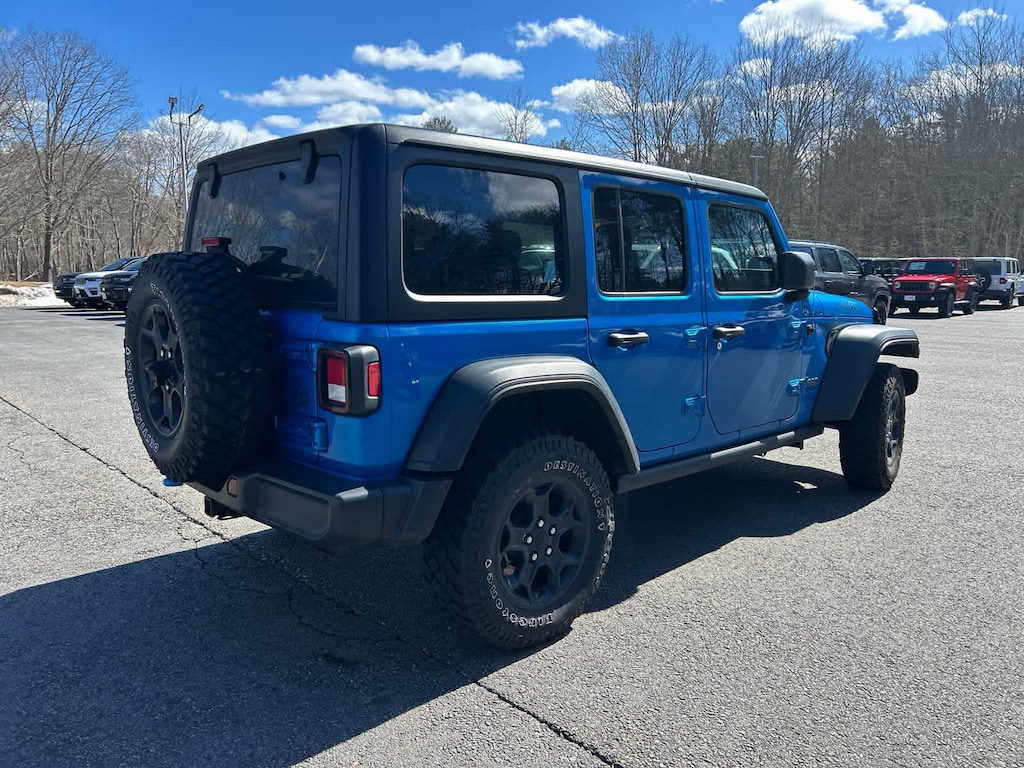 Back-Up Camera, iPod/MP3 Input, Aluminum Wheels, Dual Zone A/C, Brake Actuated Limited Slip Differential, WiFi Hotspot, Apple CarPlay®. Jeep Wrangler 4xe with Hydro Blue Pearlcoat exterior and Black interior features a 4 Cylinder Engine with 375 HP at 5250 RPM*.